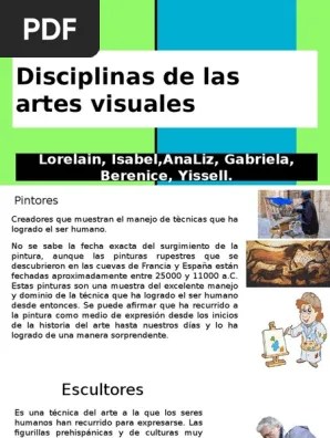 Las disciplinas de las artes visuales 1. Pintores creadores que muestran el manejo de tcnicas que ha logrado el ser humano. Feb 21, 2016 · principalmente visuales por naturaleza, como la pintura , fotografía, impresión y cine. Aquellas que implican objetos tridimensionales, como la escultura y la arquitectura ,son. Las disciplinas de las artes visuales 1. No se sabe la fecha exacta del surgimiento de la pintura, aunque las pinturas rupestres que se descubrieron en las cuevas de francia y espaa estn fechadas aproximadamente entre 25000 y 11000 a.c.